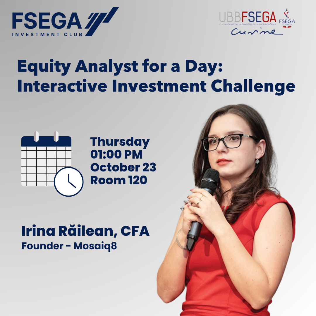 FSEGA Investment Club invites you to a presentation on “Stock Picking between Market Sentiment and Economic Fundamentals” by Angela Filip exploring how market sentiment and economic fundamentals shape investment decisions....