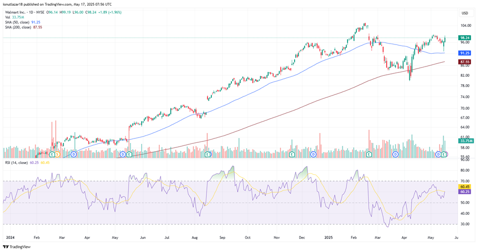 The quarterly results report above Wall Street analysts’ expectations brought an increase in the stock price of WMT shares by almost +2% at the end of the trading week, which keeps the price on an upward trend since the beginning of this year, by over +9%, despite the uncertainties that persisted especially in April regarding customs tariffs. The publication of the report supported a continuation of the technical recovery for Walmart, consolidating the price above the 50-day moving average. From a technical perspective, the stock is in a stability zone, with a favorable configuration for buyers in the medium term. The RSI supports the possibility of a continuation of the upward trend, and staying above the psychological threshold of $95 could allow testing the previous highs (~$104). However, it is recommended to monitor the volume and price reaction in the $100-$104 area, which can act as resistance.